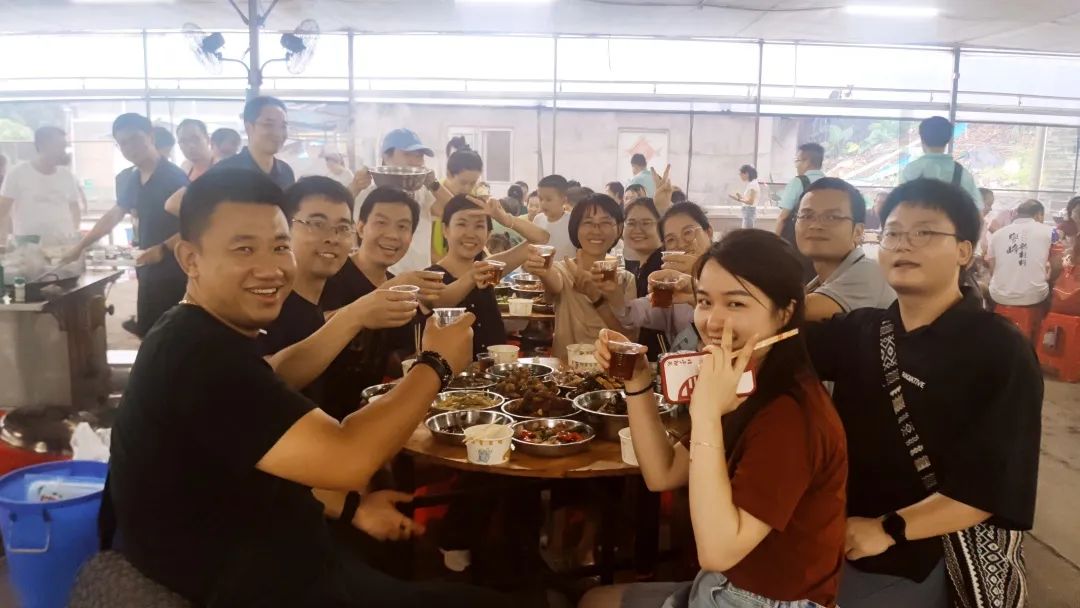 上午十點,深九家人們來到深圳鳳凰山的團建基地,大家開始擼起袖子一起加油干,忙得不亦樂乎,有條不紊地領食材、生火、洗菜、掌勺、包粽子……不一會兒,炊煙裊裊、香味四溢,一道道美味佳肴紛紛呈上餐桌。