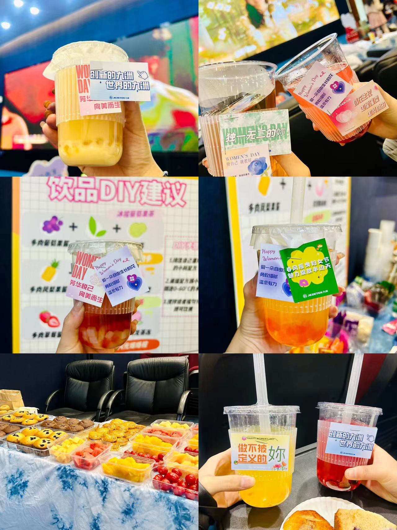 公司為大家準(zhǔn)備了果醬、茶底、小料、水果等幾十種豐富的飲品制作材料,大家對(duì)配料比例、調(diào)味選擇、色彩搭配和外部包裝等方面進(jìn)行創(chuàng)意設(shè)計(jì)來調(diào)制飲品。不一會(huì)兒一杯杯色彩繽紛、果香四溢、造型各式的專屬飲品制作完成,大家都沉浸在自己發(fā)揮想象、親自動(dòng)手制作飲品的幸福感和滿足感中。
