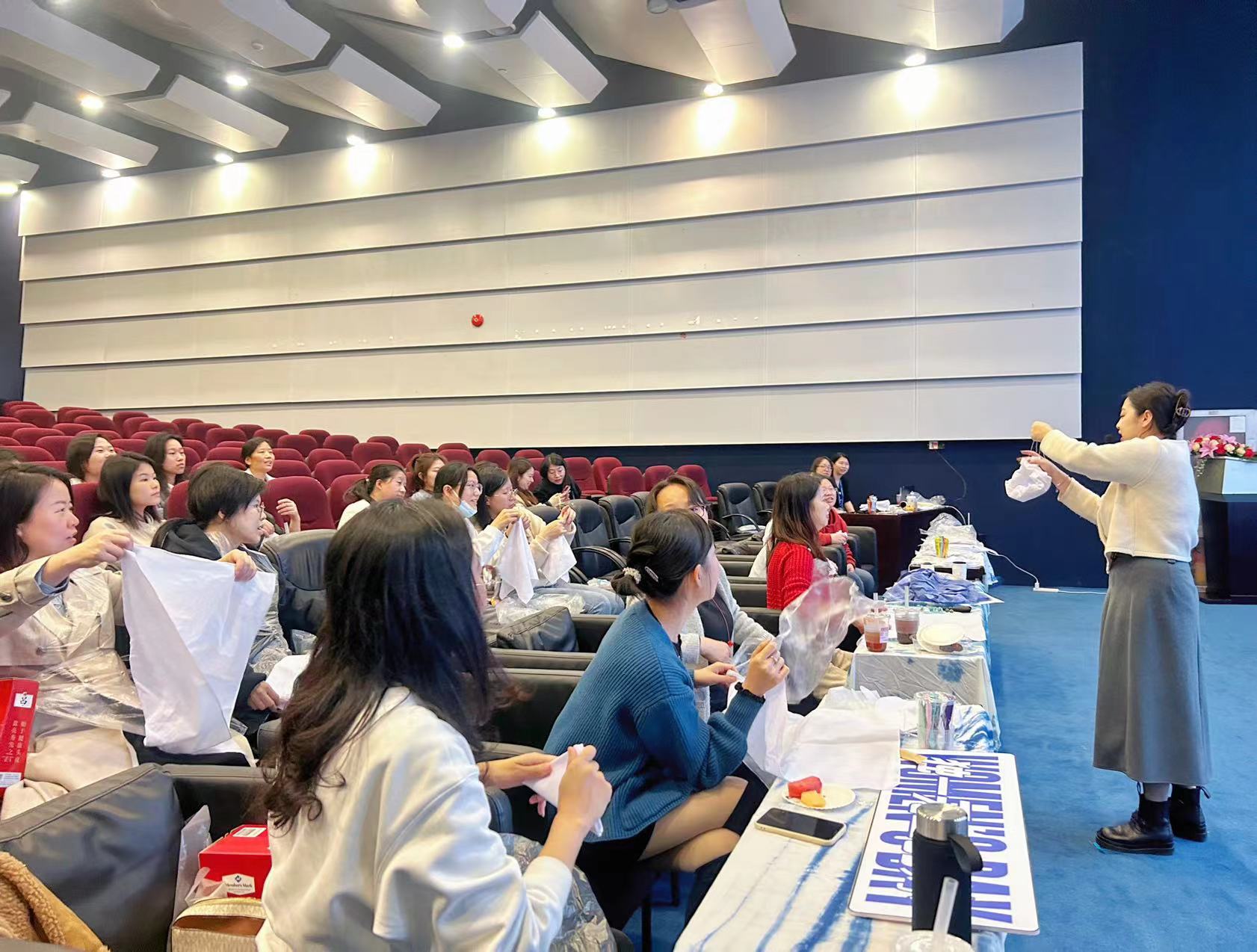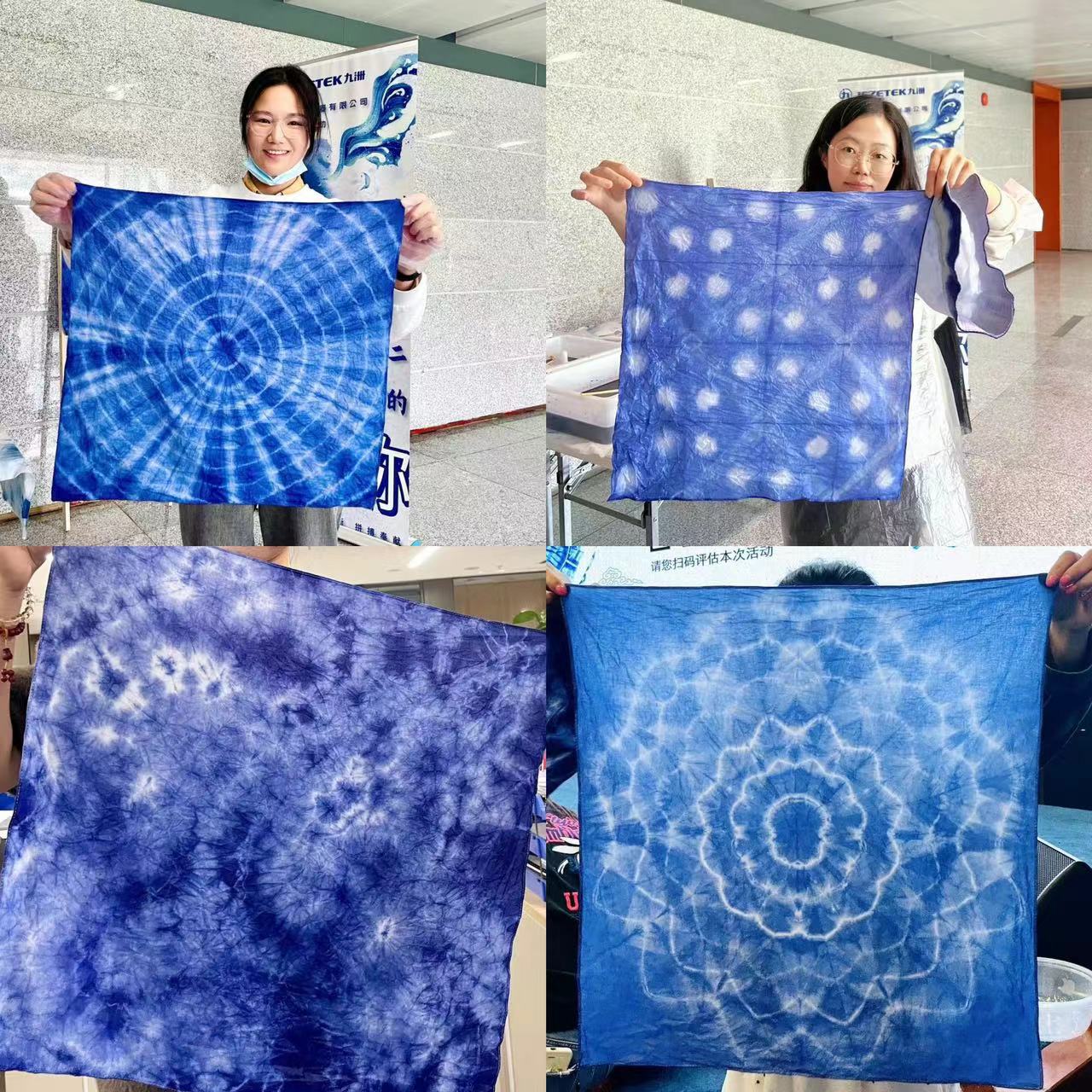 大家在收獲快樂的同時(shí),也直觀感受到扎染的藝術(shù)魅力,扎染沒有完全一樣的圖案,每一個(gè)作品都是獨(dú)一無二的,就像我們每個(gè)人一樣都擁有獨(dú)一無二的閃光點(diǎn)。