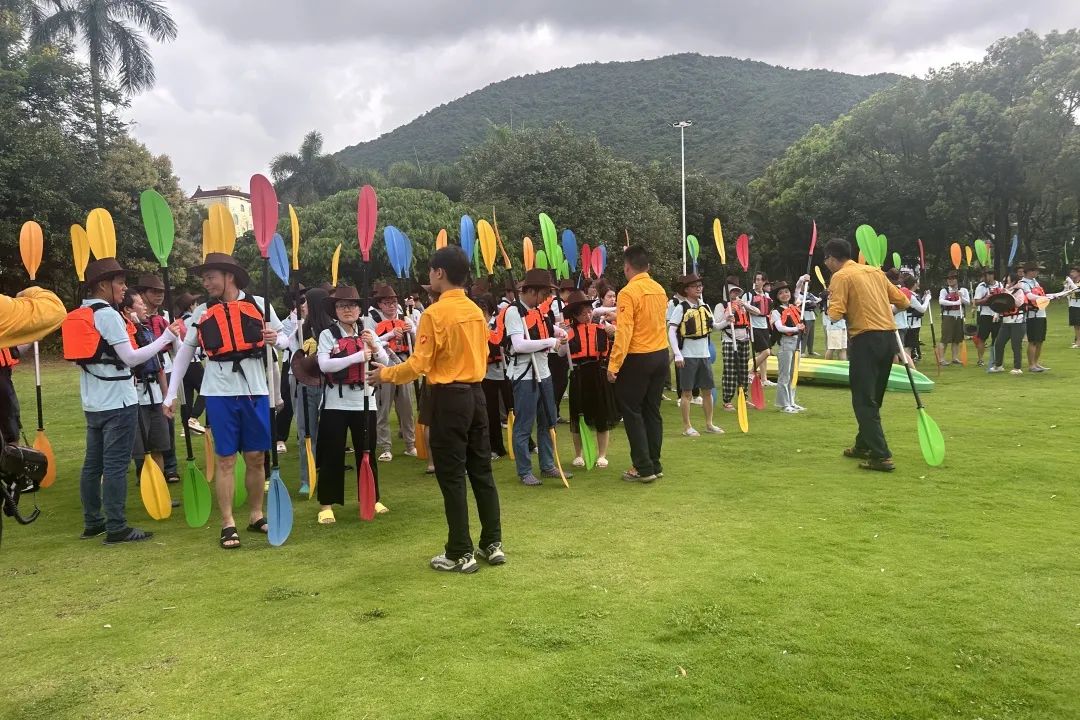 由專業(yè)的皮劃艇教練為大家做皮劃艇專業(yè)動作要領(lǐng)和安全注意事項的培訓(xùn),大家認真聆聽并迅速掌握要領(lǐng)。培訓(xùn)結(jié)束后,大家躍躍欲試,穿上救生衣,踏上皮劃艇,撐起長船槳,自由練習(xí),一陣陣歡聲笑語和整齊的“左、右、左、右...”打破了海面的平靜。