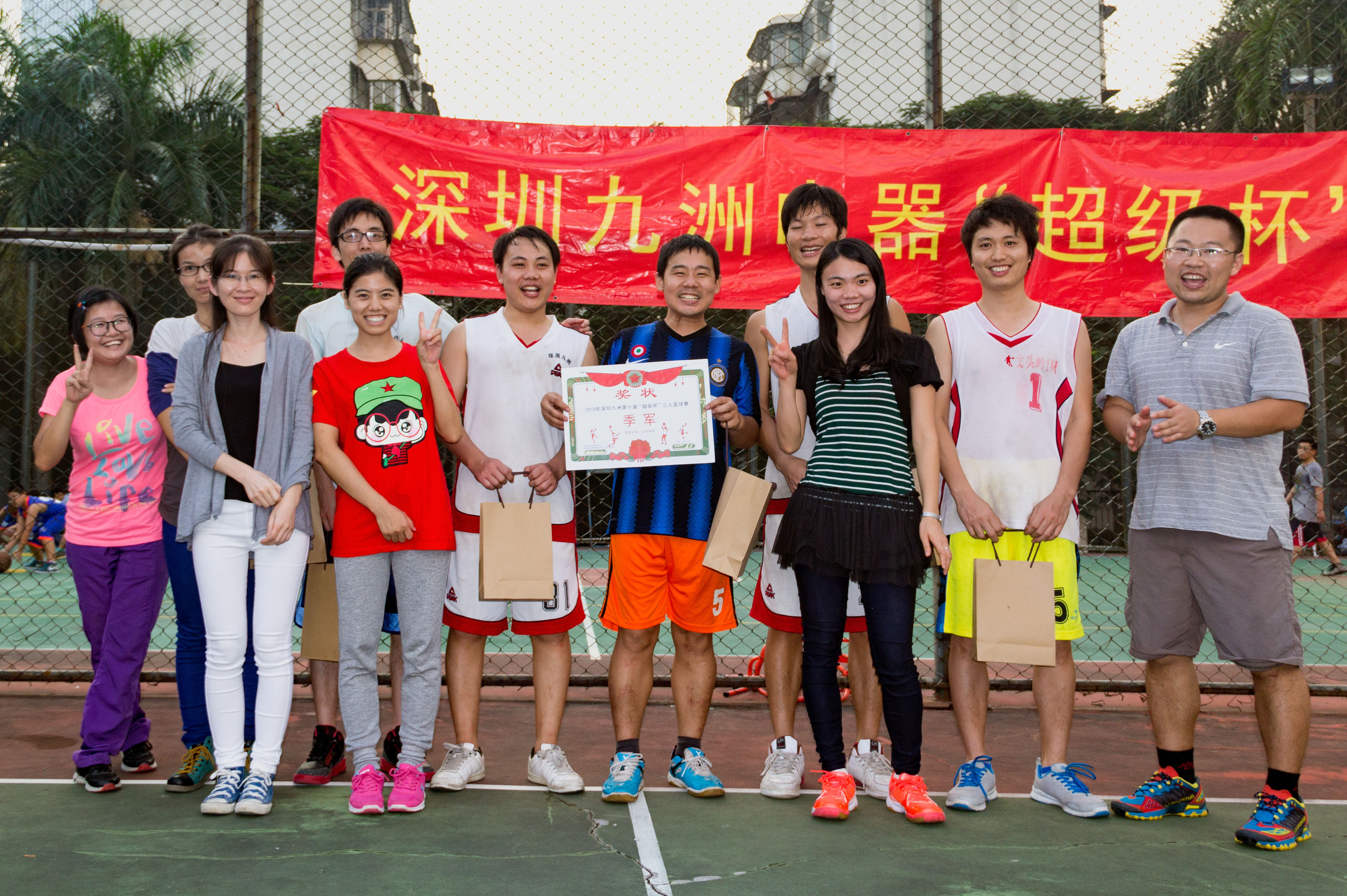 2015年11月14日,下午13時,深圳九洲第八屆“超級杯”籃球賽隨著一聲哨響正式拉開戰(zhàn)幕。 報名參加比賽有12支隊(duì)伍,分為4個小組進(jìn)行比賽淘汰制,運(yùn)動員們在場下是親密無間的同事,在球場上卻是你爭我趕,不放過任何一個得分的機(jī)會。歡呼聲、喝彩聲此起彼伏,經(jīng)過3小時的艱苦鏖戰(zhàn),籃筐終結(jié)者憑借良好的團(tuán)隊(duì)配合和戰(zhàn)術(shù)運(yùn)用,最終獲得冠軍;亞軍“技術(shù)支持部”、季軍“515又浪”、3分球冠軍程炳財,本屆籃球賽圓滿結(jié)束。