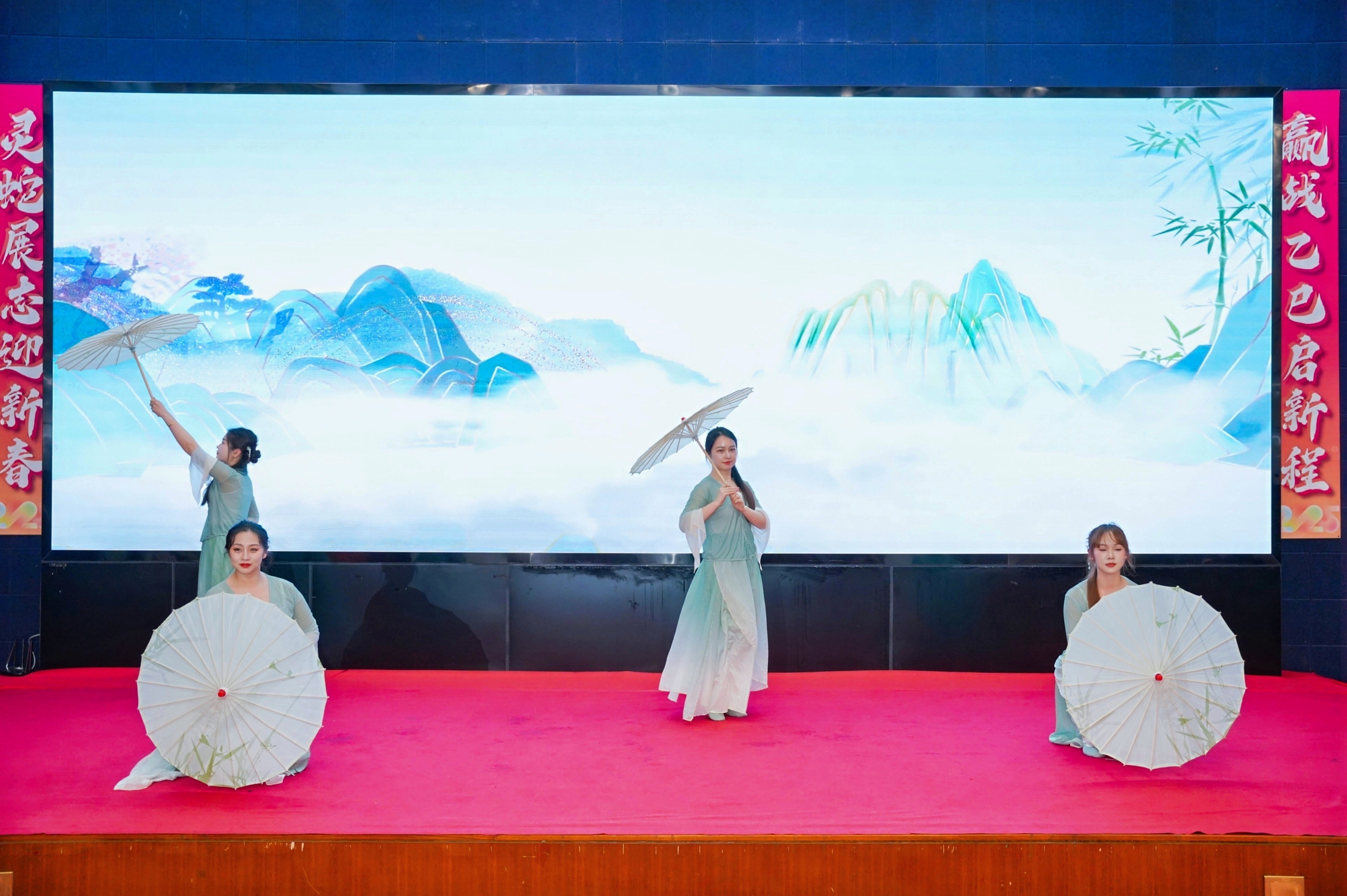 看那一抹靈動的青黛,舞蹈《青蛇》動作行云流水,隊形變化干脆利落,展現(xiàn)出公司全體員工斗志昂揚的精神風貌,立志在蛇年創(chuàng)造新輝煌,將現(xiàn)場氣氛推向高潮 。