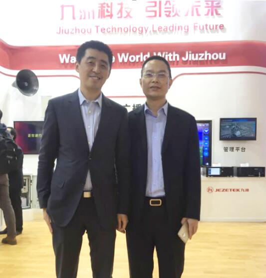 深圳市九洲電器有限公司總經(jīng)理李紅滿(右)與視若飛CEO王曄(左)在CCBN2016的合影