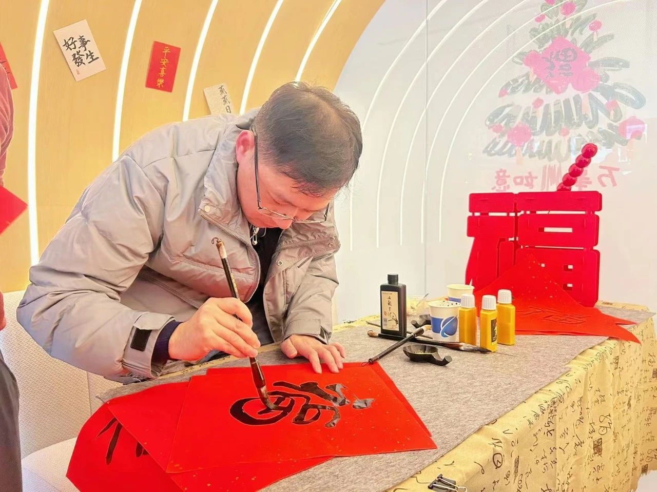 “心中有丘壑,筆墨作山河”,大家在鋪開(kāi)的春聯(lián)紙上,寫(xiě)下蒼勁有力、瀟灑自如的福字,將濃濃的情誼、真誠(chéng)的祝福,傾注于字里行間。