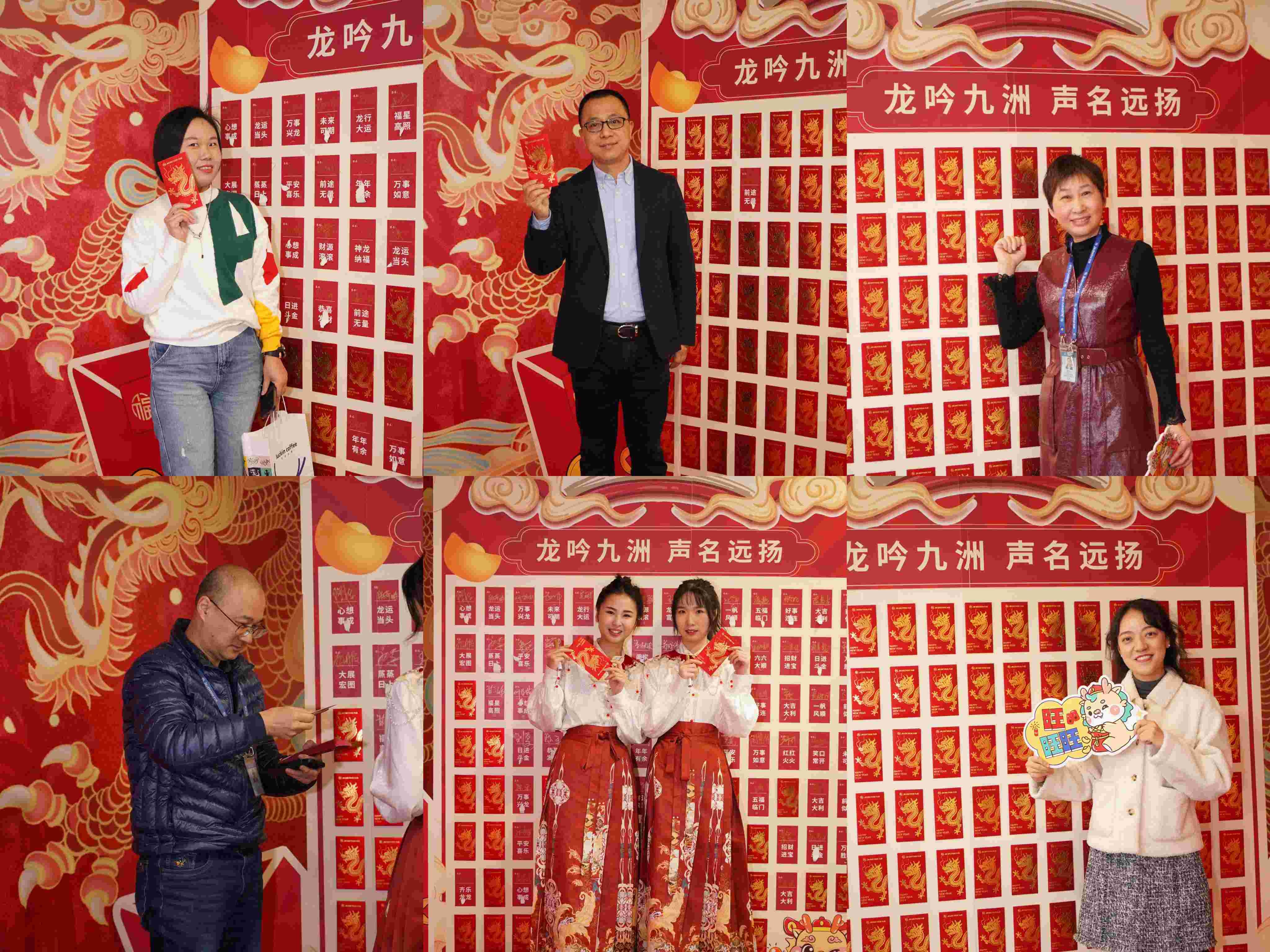 除了伴手禮外,公司還設置了紅包簽到墻,紅包內有不同的“小驚喜”,抽取紅包后,龍年相關祝福語映入眼簾,大家紛紛簽名寄語,祝愿公司蒸蒸日上,家庭幸福安康!